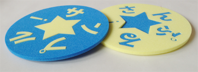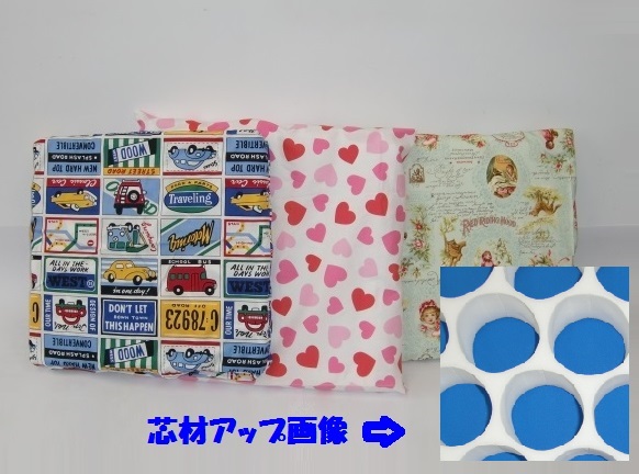 発泡体表面に生地を貼り合せしてスリット(切り込み)を入れた加工で仕上げる。