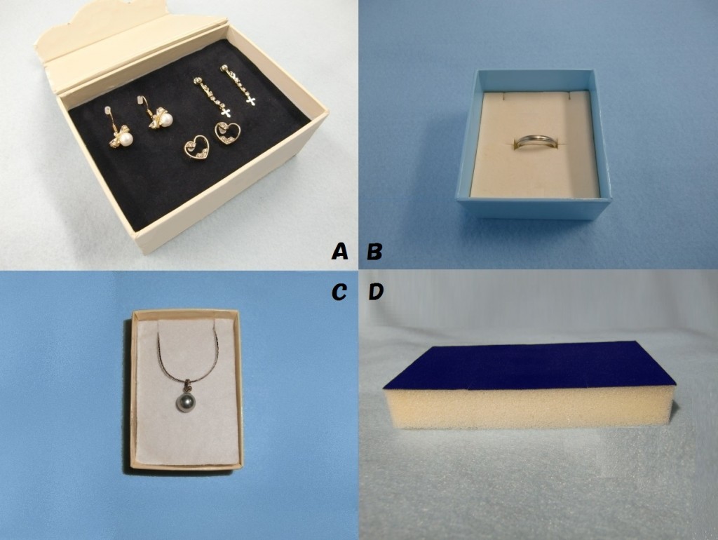 ピアス用内装材、指輪リング用内装材、ネックレス用内装材